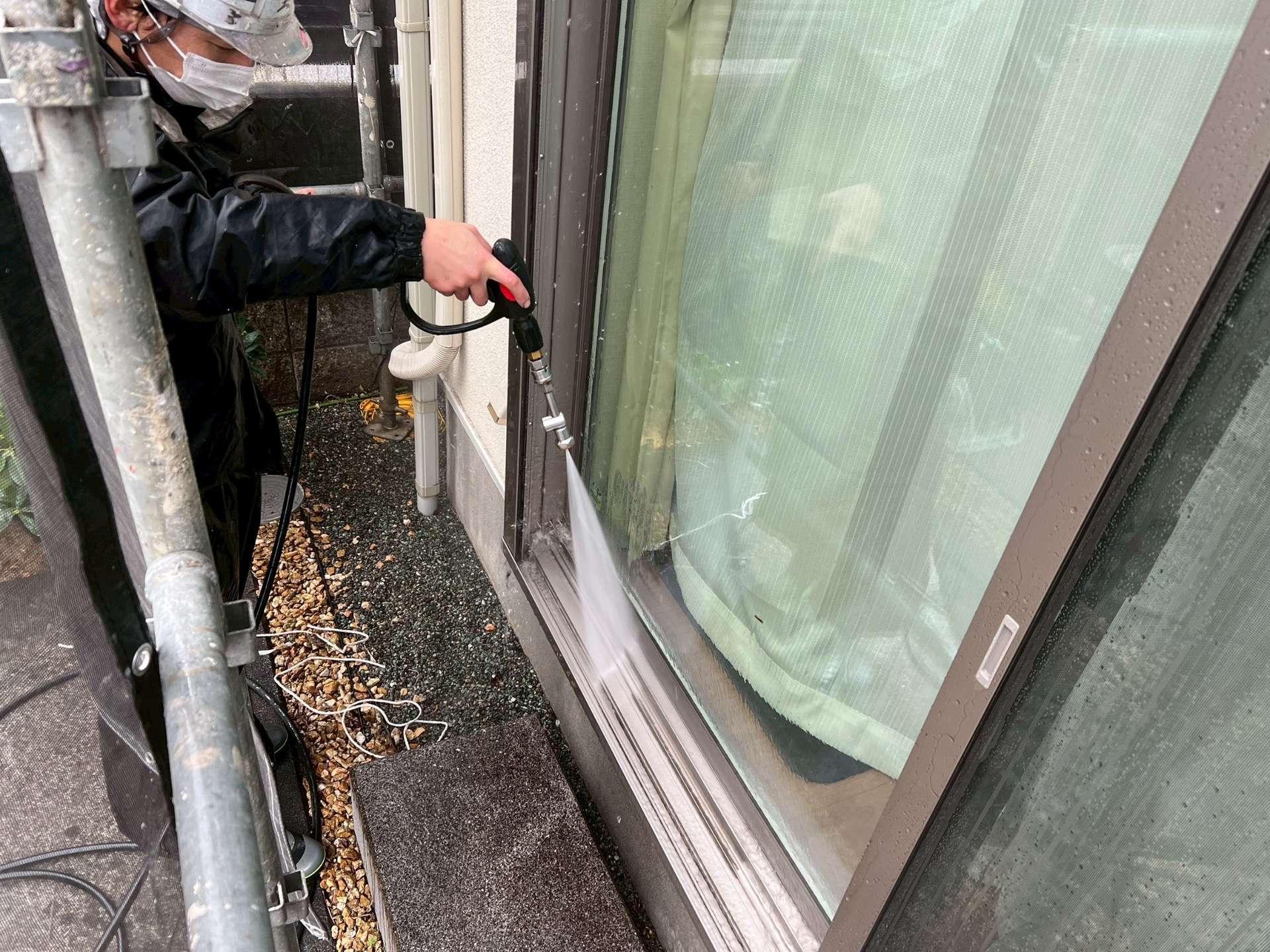 本日の作業内容は、塗装前の重要工程である 高圧洗浄 です。